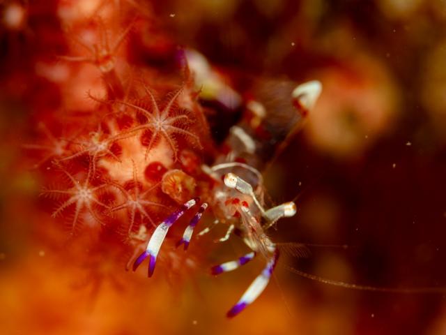 ちびハクセンアカホシカクレエビ〜!