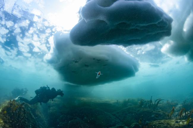 渡辺裕子さん流氷とダイバー 2026年2月21日撮影 知床